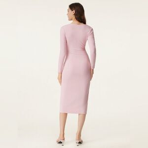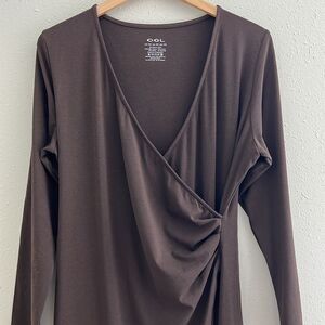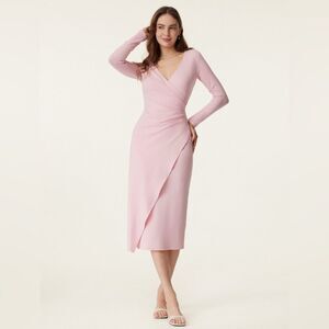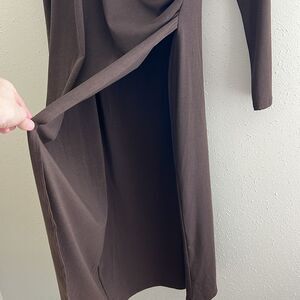 NWT OGL Light Cotton Rib Faux Wrap Light Cotton Midi Dress - Hazelnut Coco