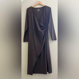 NWT OGL Light Cotton Rib Faux Wrap Light Cotton Midi Dress - Hazelnut Coco Size 2XL