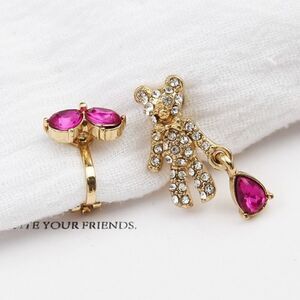 Adorable and cute asymmetrical Teddy Bear heart earrings in gold tone with clear crystals and red stones. Pierced earrings that are petite and sweet. The pictures don’t do justice. They are so much better in person. 2 pairs only.