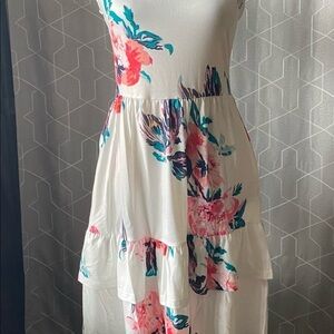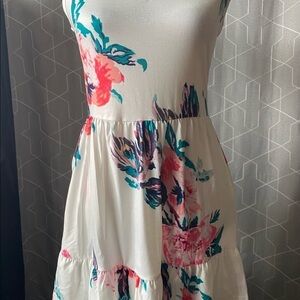 NWT-OUGES-adorable white floral tank dress, ruffle bottom skirt, two side pockets,size small, excellent condition, never been worn