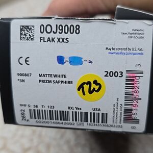 NWT Oakley Oj9008 Flak XXS Square Sunglasses Color: Matte White/Prizm Sapphire