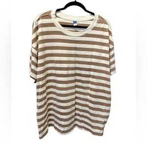 NWT Old Navy Plus Size Curvy Striped Brown White Short Sleeve T-Shirt- Size XXLT
