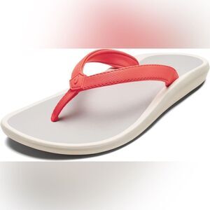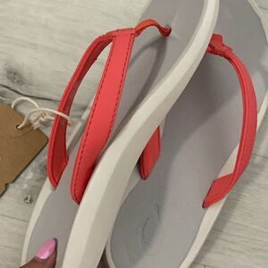 NWT-OluKai-OLUKAI Pi'oe Women's Beach Sandals-Hot Coral/Gray mist-women’s size 8