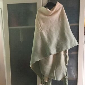 NWT Oversized wrap, scarf, shawl Ombré Sea Foam Green and Ivory with fringe, Cozy, fluffy, warm for Winter and Fall. 22x72, Acrylic,