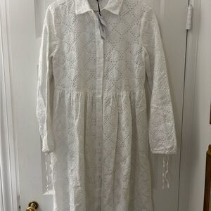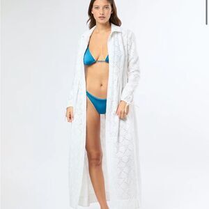 NWT Onia air linen maxi shirt dress eyelet shell pattern button front size small
