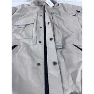 Elevate your wardrobe with the "Order Plus" Jun & Long cargo jacket, a seamless blend of functionality and style. Designed for the modern woman, this military jacket comes in a versatile cream color that pairs effortlessly with any outfit. The polyester outer shell ensures durability and resistance to the elements, making it a practical choice for both outdoor adventures and casual wear. Available in a comfortable size L, this jacket features a regular fit that provides ample room for movement without sacrificing a sleek silhouette. The detailed design includes a series of pockets that are as practical as they are aesthetically pleasing, perfect for those who appreciate both form and function in their attire.THERE ARE SMALL SPOTS ON JACKET.SEE PICTURES! 27"T x 22.5"W x 23.5"Arm