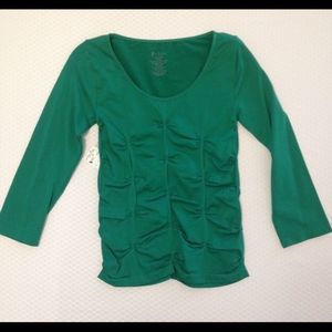 P. Luca Milano kelly green long sleeved shirt with a textured pattern. Dead stock with tags. Machine washable. Size S/M. Spandex.