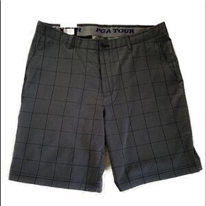 NWT PGA Tour premium flex twill shorts with four pox, belt loops, button/zip front closure and stretch. Waist 38”, inseam 10” and rise 11”.