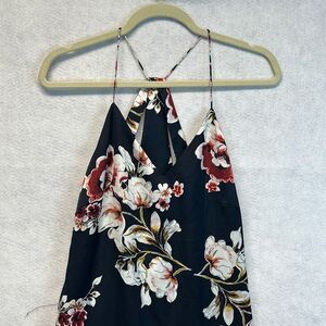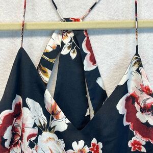 NWT PHILOSOPHY Dress Women's Small Navy Floral V-Neck Midi Sleeveless Ruffled