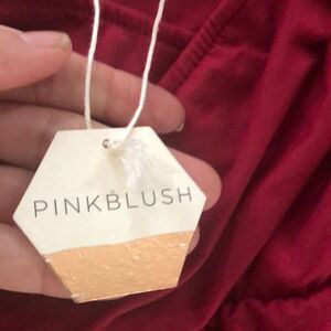 NWT PINKBLUSH Red maternity dress ruched side, long poly spandex size S
