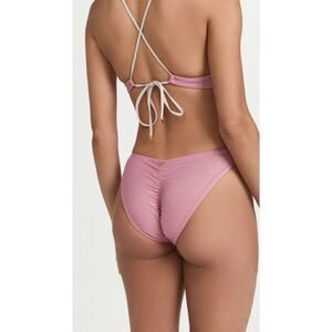 Our classic bikini bottom with a high cut & ruched back. Pair it with one of our Namaste tops for a cute set. A touch of ruching in back accentuates the sleek fit of these metallic PQ Swim bikini bottoms.