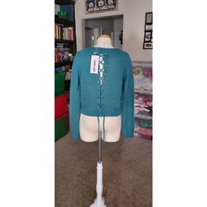 PRETTY GUIDE WOMENS CROP LACE UP SWEATER