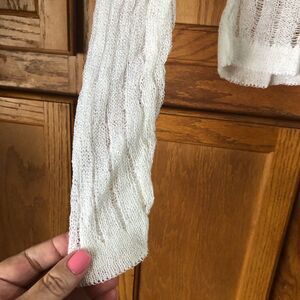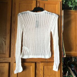 The PRETTY LITTLE THING Sheer Ribbed Knit Long Sleeve Top in a white plus size XL is a stylish and versatile pullover blouse perfect for various occasions such as travel, parties, or casual wear. Made with a lightweight and sheer acrylic blend fabric, this top features a crew neck and flared sleeves, adding a touch of elegance to a basic yet trendy design. The ribbed accents give it a chic look, while the pullover closure makes it easy to wear. Perfect for a designer-inspired wardrobe addition from the United Kingdom.