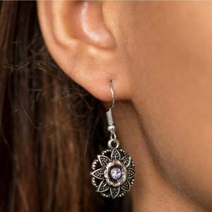 New with tag. Paparazzi purple and silver colored dangling earrings.