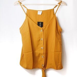 NWT Paper Crane Mustard Yellow Front Button Noodle/Spaghetti Strap Top Women Size S.