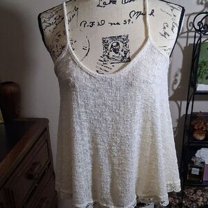 NWT Paper Crane Women's Cream Sleeveless Lace Trim Top Large