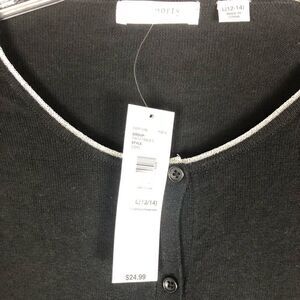 Cute button down black cardigan by Passports featuring silver accents on the collar and pockets. It’s in new condition with tags.