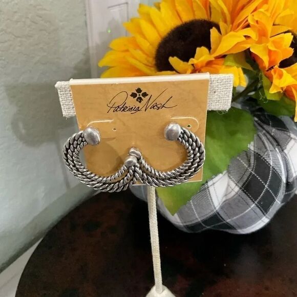 NWT Patricia Nash Twisted Rope Triple Hoops Silver Ox Sold Out, Hard To Find