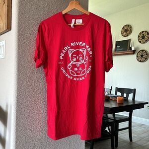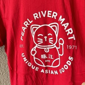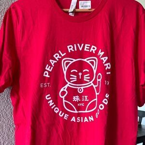 NWT Pearl River Mart Lucky Cat T-Shirt, Red Canvas L Cotton Short Sleeves Unisex