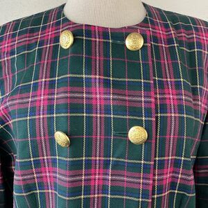 Wow!! This is an absolutely beautiful and unique outfit by Pendleton featuring amazing colors, incredible buttons and plaid design. The jacket measures 20 inches armpit to armpit laying flat and is 26 inches in length from shoulder to hem. The skirt measures 14 inches at the waist lying flat and is 32 inches in length.