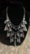 Vintage Premier Designs triple layered necklace with sea glass and brushed matte silver tone drips. Two lobster claw closures and an extender (24+4). With the double lobster claw design, this necklace could be worn closer to the neck (shortened without altering the integrity of the necklace. The clasps have some signs of corrosion (light pitting) and some of the matte drips appear to as well. It’s hard to see with the brushed finish and I couldn’t capture it by photo. I lightly washed this piece, but did not extensively polish or add soap. New old stock. Beautiful necklace. The Premier Designs emblem is on the extender of this necklace which is removable. I did not see the stamp on the other clasps.