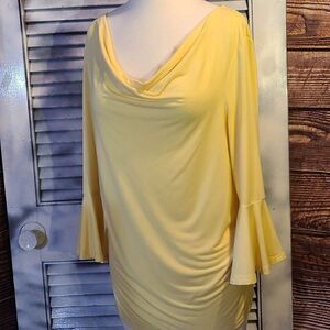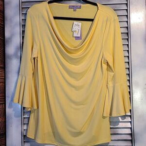 Gorgeous and elegant blouse from Premise. New with tags. Size medium. Slimming draped style. Tulip 3/4 sleeves. 95% polyester, 5% spandex. Machine washable. Made in Vietnam. Excellent condition. Nonsmoking home.