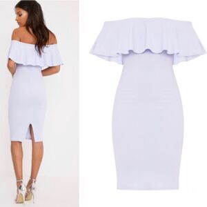 New with tags Pretty little thing Celinea Dusty Blue Bardot Frill Midi Dress.