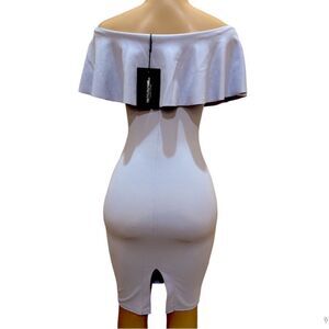 Step out in style this season with this midi dress, featuring bang on trend frill bardot neckline this elegant versatile dress is a must- have staple in your wardrobe this upcoming party season! Style with a pair of barely there heels and cute clutch ready for a night on the town!