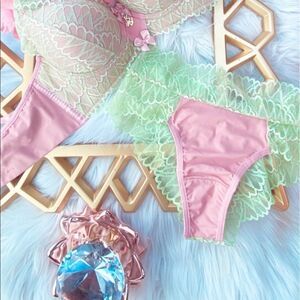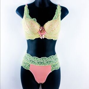 Your going to feel pretty iconic with this 2 pcs lingerie set Featuring a beautiful floral soft bra with push up and control with laced up details and matching panties.