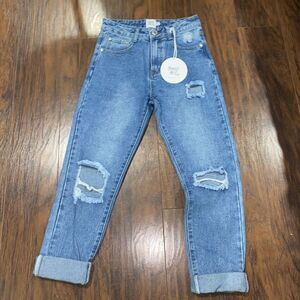 NWT Princess Polly HAYDEN KNEE RIP JEANS MID WASH DENIM