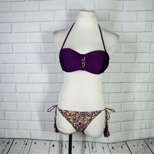 NWT Purple Floral Fringe Cheeky Bikini - Size Small