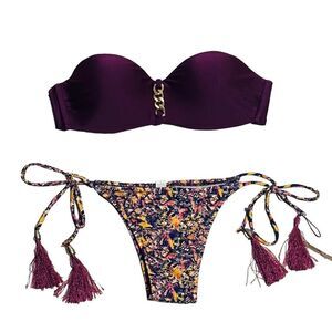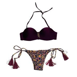 Purple Floral Fringe Cheeky Bikini - Size Small. Brand new no tags.