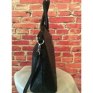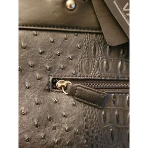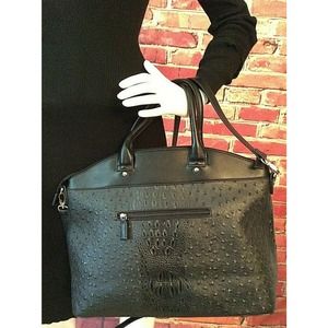NWTPut It All in Here Vegan Leather Large Ostrich Print Tote Fashion Handbag Blk