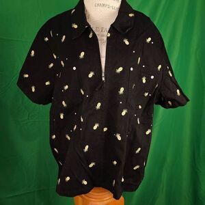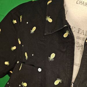 NWT Quacker Factory Black Embroidered Pineapple Short Sleeve Full Zip Jacket 3X