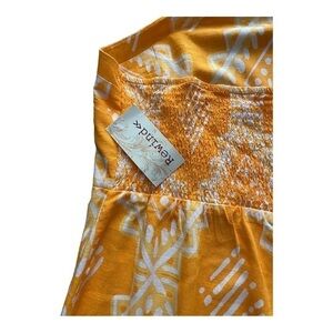 Orange and white print halter dress, buttons at back of neck, smocked back, brand new, size 2x