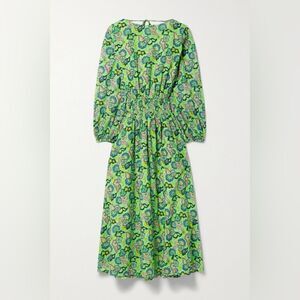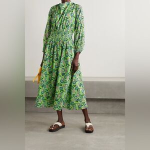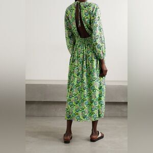 Rhode's colorful 'Poppy' dress is cut from lightweight cotton-voile and has elasticated cuffs and a shirred waist to create volume. It turns to a tie-fastening open back and hits just below mid-calf. Wear yours with sandals and minimal accessories.