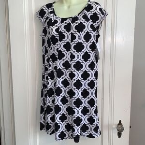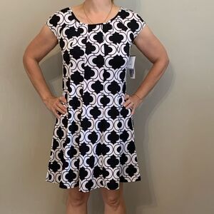 NWT RN Studio by Ronni Nicole black & white thin polyester knit summer dress
