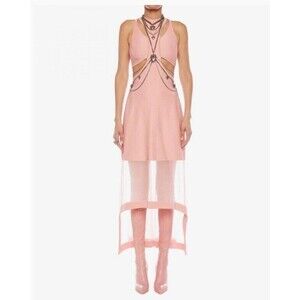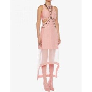NWT.RUNWAY $3460 ALEXANDER MCQUEEN Rib-Knit Cutout Mesh Dress Sz L
