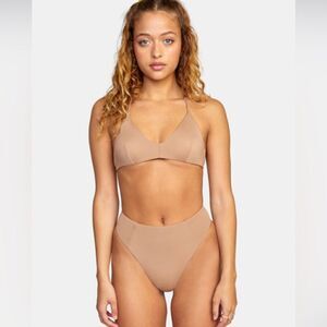 NWT RVCA Solid Crossback Top & High Rise Cheeky Bottoms S in Wood