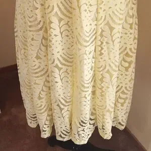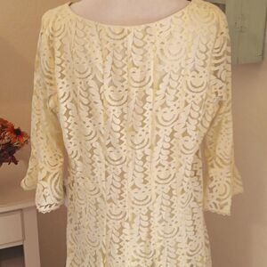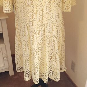 NWT Lemony lace dress. Unlined Juliette sleeves. Fully lined. Vertical seamed panels create a fit and flare shape. Pull over style. Size 18 measures 44 at chest, 37 at waist, 48 at hips.40.5 long from shoulder to hem. Perfect for a summer event. Bright and sunny.