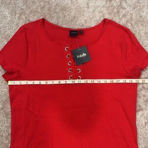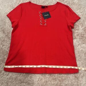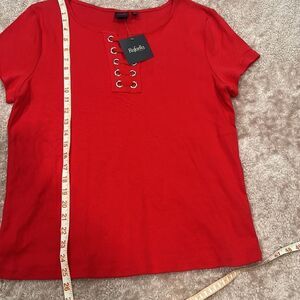 NWT Rafaella Red Cotton Cropped T Shirt Size XL