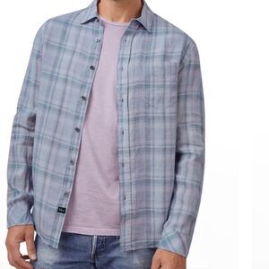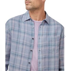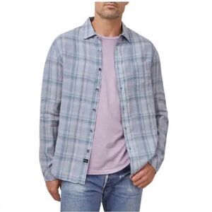 NWT Rails Havana Plaid Denim Sport Linen Shirt in Cerulean Jewel $148