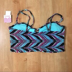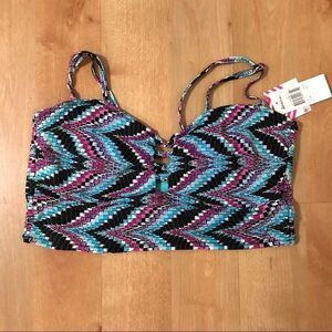 This suit is new with tags. The top is a wider and provides a little more coverage. It would be a good choice for an active day at the beach or pool! There is light padding that is removable. The bottoms are full coverage and low rise.