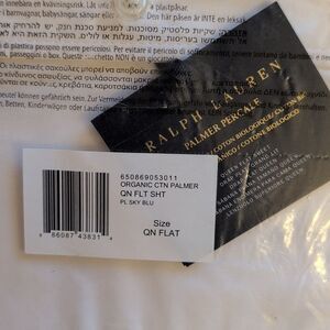 New with tag in original packaging, Ralph Lauren Queen Flat Sheet Organic Cotton Palmer Polo Sky Blue. Retail: $175