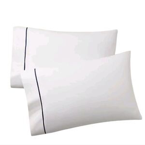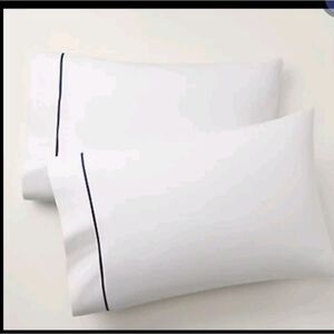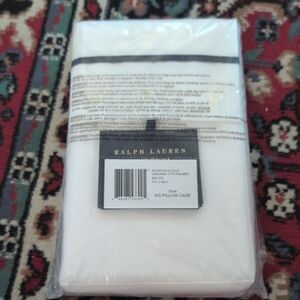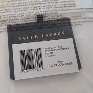 New in original packaging, never used, Ralph Lauren Standard Pillow Case White Polo Navy blue organic Cotton Palmer. Comes with two king sized pillowcases in the package. King pillowcase: 21" L x 40" W. Retail: $140