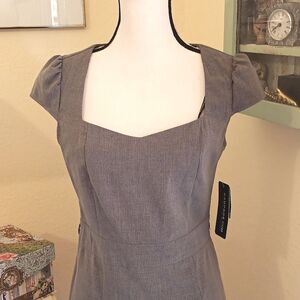 NWT Stylish gray dress by Rampage. Gathered cap sleeves. Fitted bodice. Wider waistband. Straight, seamed skirt. Size M measures 34 at chest. 28 at waist, belt loops, sorry, no belt. 38 at hips, 33 at bottom hem for a perfect pencil shape. Perfect for any occasion, and NEW.