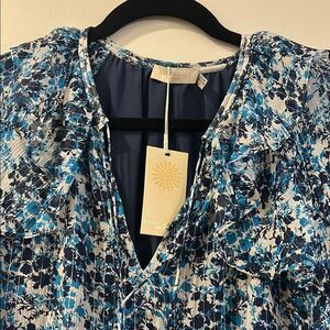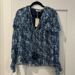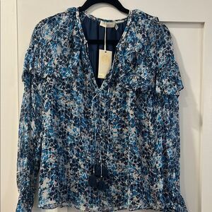 NWT Ramy Brook Blue Printer Celeste Blouse, Size Medium