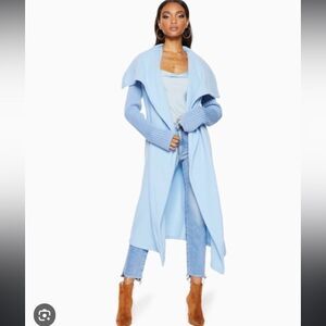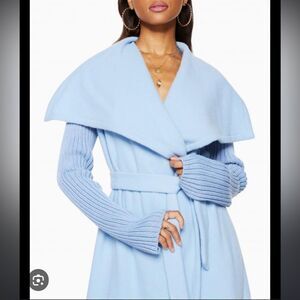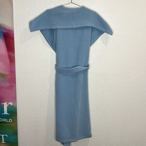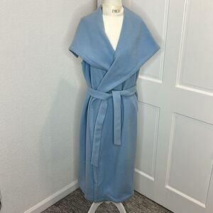 A wool oversized wrap vest jacket with belt. Oversized collar. Unlined. 100% wool. Dry Clean.