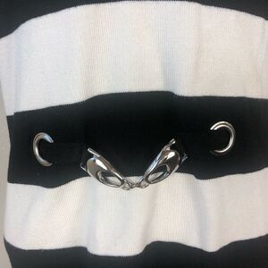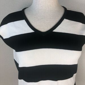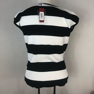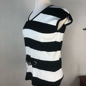 Cute and casual black and white striped top by Red featuring a silver chain embellishment near the hem. It’s in new condition with tags.