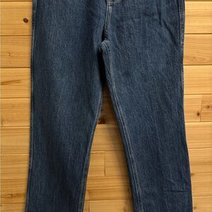 Brand New Ultra High Rise Medium Wash Organic Cotton Blend Straight Leg Jeans With Stretch & Button & Zipper Closure